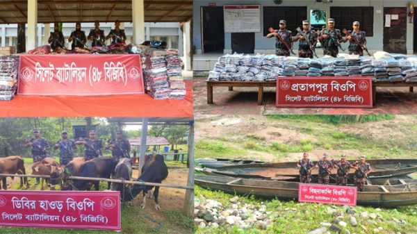 সিলেটের কথা ::: হবিগঞ্জ জেলার সীমান্ত এলাকায় আটটি পৃথক অভিযান চালিয়ে প্রায় দেড় কোটি টাকার ভারতীয় চোরাই পণ্য জব্দ করেছে বর্ডার গার্ড বাংলাদেশ (বিজিবি-৫৫)। গত বুধবার (১৭ সেপ্টেম্বর) রাতে বিষয়টি
