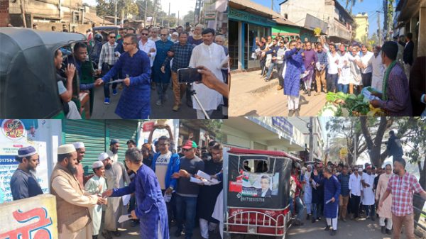 সিলেটের কথা ::: ত্রয়োদশ জাতীয় সংসদ নির্বাচনকে সামনে রেখে সিলেট-১ আসনে নির্বাচনী প্রচার-প্রচারণা চালিয়েছেন বিএনপি মনোনীত প্রার্থী খন্দকার আব্দুল মুক্তাদির। শনিবার সকাল থেকে নগরীর বিভিন্ন এলাকায় ধানের শীষ প্রতীকের পক্ষে