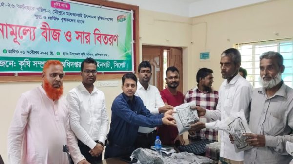 গোয়াইনঘাট প্রতিনিধি ::: সিলেটের গোয়াইনঘাট উপজেলায় খরিপ-২ মৌসুমে ২০২৫-২৬ অর্থবছরে মাষকালাই উৎপাদন বৃদ্ধির লক্ষ্যে ক্ষুদ্র ও প্রান্তিক কৃষকদের মাঝে বিনামূল্যে বীজ, সার এবং ‘ফ্লাড রিকনস্ট্রাকশন ইমারজেন্সি অ্যাসিস্ট্যান্ট প্রজেক্ট (ফ্রিপ)’ এর
